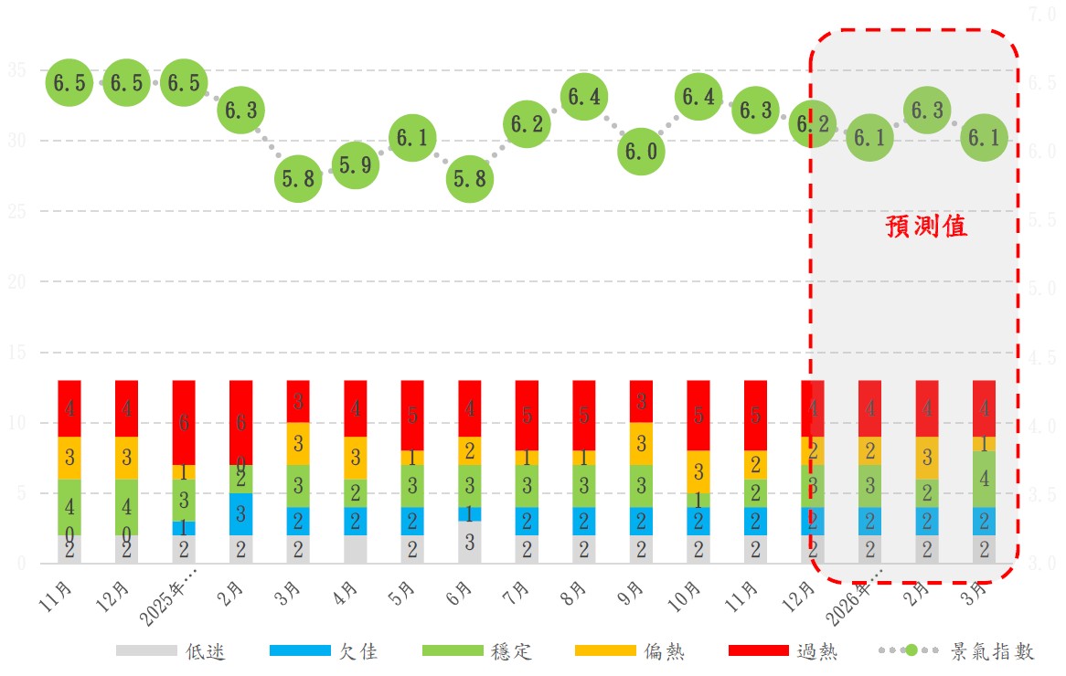 | 澳門經濟學會發佈最新澳門經濟景氣指數走勢。 經濟景氣去年末平穩收官 2025年最後兩個月收官階段整體運行平穩。博彩業收入延續按年增長走勢,惟十二月較十一月略有回調,最後兩個月日均博彩毛收入分別為7.03億及6.74億澳門元,反映增長動力或轉趨溫和。2025年全年接待遊客達4,006萬人次,超越 2019年疫情前峰值,並創下歷史新高,較 2024 年增長 14.7%。旅遊及相關指標持續活躍,入境旅客人次、酒店住客量與平均入住率均維持在“偏熱”至“過熱”水平。人力資源市場表現穩健,整體失業率維持在1.7%的低位,反映勞動力需求仍然較為殷切。 然而,外部環境的不確定性、消費模式的轉變、經濟發展的不平衡等問題並存的情況下,中小企業經營壓力與居民收入增長乏力,企業與家庭於消費及投資決策上或更趨保守。內地消費者信心指數較長時間處於“低迷”區間。資本市場方面,六大綜合度假休企股價仍於“欠佳”區間徘徊,反映投資者對中期經濟前景態度審慎。本地居民貸存比維持較低水平,住宅樓價指數亦持續低迷。經綜合多項經濟指標的分析研判和推算,十一月至十二月經濟景氣指數分別為6.3分及6.2分。 料首季綜合旅遊休閒基礎穩固,但整體節奏或趨緩 展望2026年,“穩中向好”的支撐條件和基本趨勢沒有變,澳門經濟仍將以綜合旅遊休閒業作為主要引擎帶動,並料隨着2026年相關的施政方針有效貫徹落實,本澳休閒旅遊的市場推廣活動的增加,休閒旅遊產品不斷的豐富,以及訪澳旅客更趨多元化等因素帶來的支持,綜合旅遊休閒業將維持較強韌性,持續推動整體增長。即將到來的春節及其他節假日帶來的客流高峰,將對入境旅客人次、酒店入住率以及博彩毛收入形成直接支撐,帶動整體景氣基礎進一步穩固。然而,隨着經濟社會轉變,整體發展不平衡,社區經營環境面臨深刻複雜變化,整體經濟呈現“冷暖並存”,民生區中小微企業經營壓力仍然突出。經綜合研判和推算,預料今年第一季本澳經濟景氣指數將維持於6.1分至6.3分區間,整體景氣表現可望持續呈現“持續平穩”態勢。 圖:過去一年經濟景氣指數走勢及近期預測值(十三項指標) 報告內容詳閱本會網站。 |