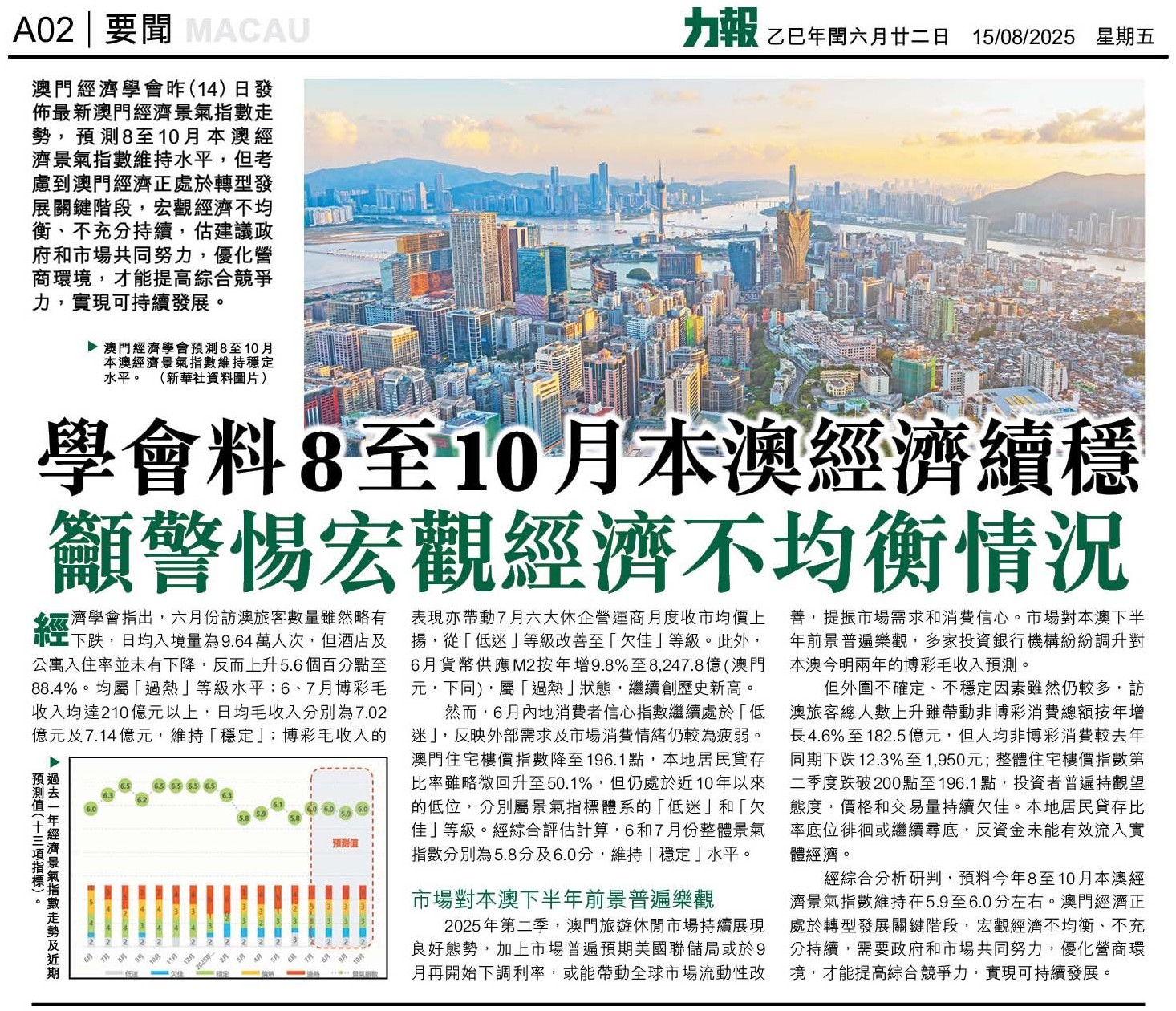 學會料8至10月本澳經濟續穩 籲警惕宏觀經濟不均衡情況 |