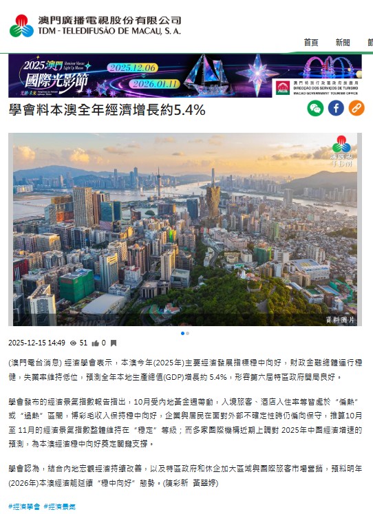 | 澳廣視TDM(電台新聞) | 2025-12-15 |