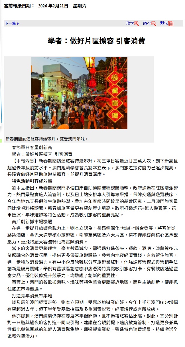 | 澳門日報 | 2026-02-21 |