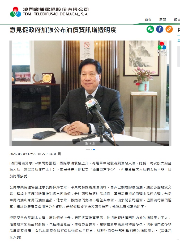 | 澳廣視TDM(電台新聞) | 2026-03-09 |