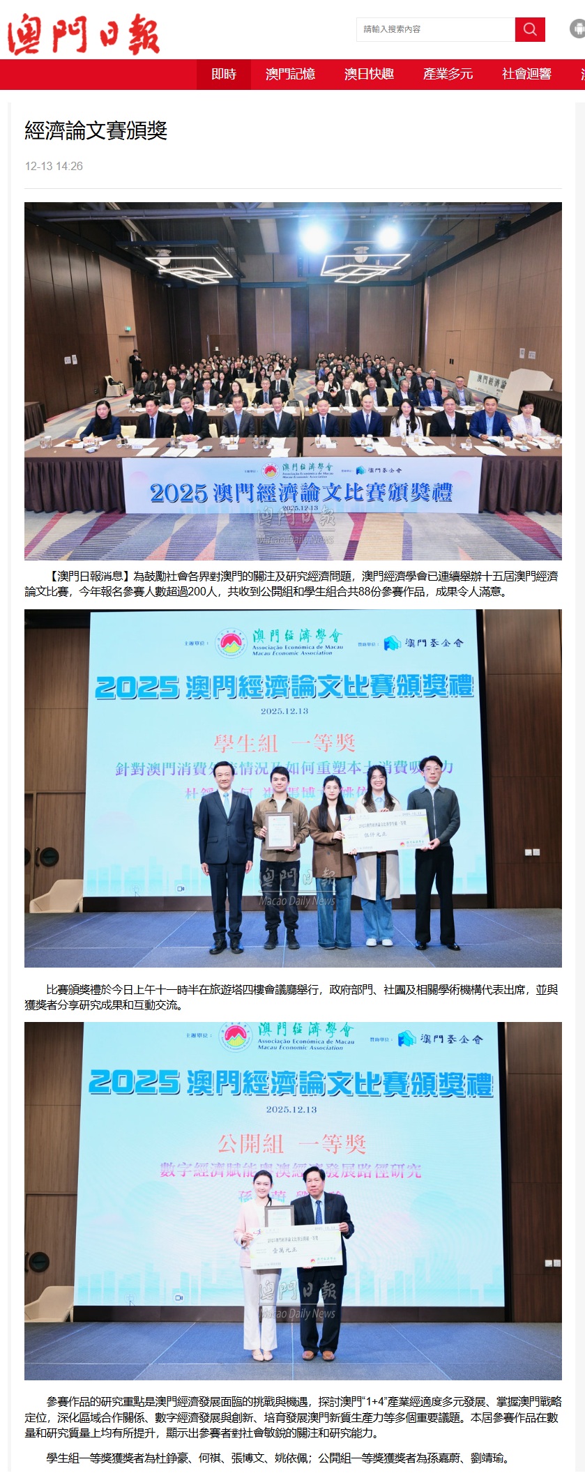 | 澳門日報(即時新聞) | 2025-12-13 |