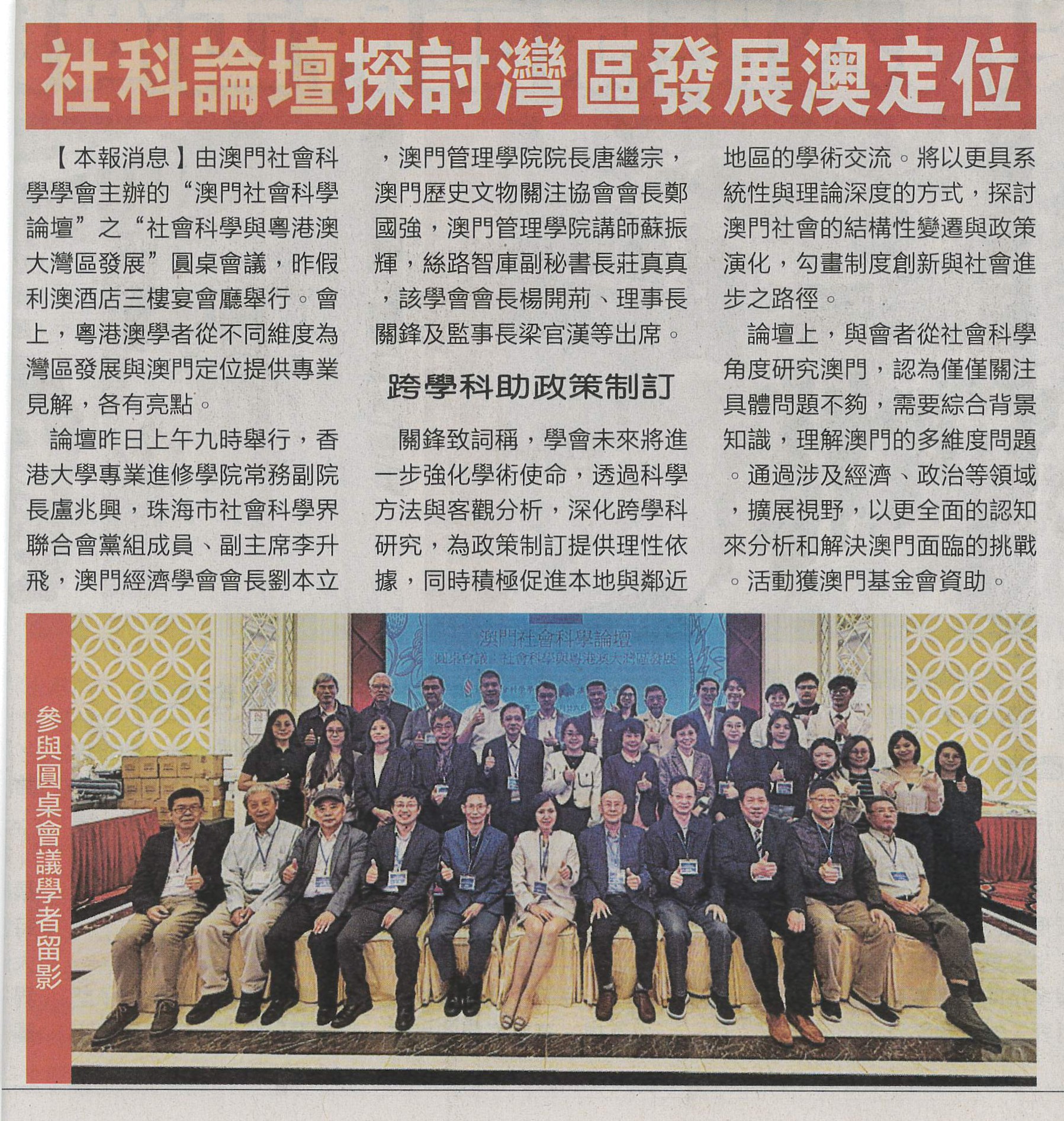 | 社科論壇探討灣區發展澳定位 【本報消息】由澳門社會科學學會主辦的“澳門社會科學論壇”之“社會科學與粵港澳大灣區發展”圓桌會議,昨假利澳酒店三樓宴會廳舉行。會上,粵港澳學者從不同維度為灣區發展與澳門定位提供專業見解,各有亮點。 論壇昨日上午九時舉行,香港大學專業進修學院常務副院長盧兆興,珠海市社會科學界聯合會黨組成員、副主席李升飛,澳門經濟學會會長劉本立,澳門管理學院院長唐繼宗,澳門歷史文物關注協會會長鄭國強,澳門管理學院講師蘇振輝,絲路智庫副秘書長莊真真,該學會會長楊開荊、理事長關鋒及監事長梁官漢等出席。 跨學科助政策制訂 關鋒致詞稱,學會未來將進一步強化學術使命,透過科學方法與客觀分析,深化跨學科研究,為政策制訂提供理性依據,同時積極促進本地與鄰近地區的學術交流。將以更具系統性與理論深度的方式,探討澳門社會的結構性變遷與政策演化,勾畫制度創新與社會進步之路徑。 論壇上,與會者從社會科學角度研究澳門,認為僅僅關注具體問題不夠,需要綜合背景知識,理解澳門的多維度問題。通過涉及經濟、政治等領域,擴展視野,以更全面的認知來分析和解決澳門面臨的挑戰。活動獲澳門基金會資助。 詳閱: 澳門日報A04。 |